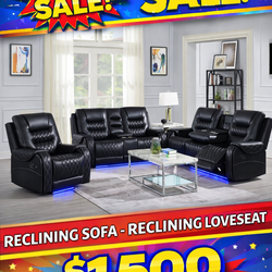 Tax season sale sofa and loveseat reclining black leather $1,500 with led$1,500Chicago, IL