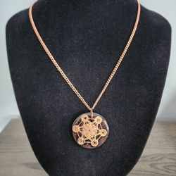 Shungite & Quartz Orgonite Necklace – Copper Metatron’s Cube Pendant, 20″ Chain