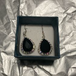16” Necklace & Pierced Earrings Set Silver/Black Beads With Purple/white Enamel Hearts Or Spades, Silver Tone Feathers Dangle$7Carpentersvle, IL