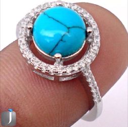 Beautiful Blue Sleeping Beauty Turquoise White Topaz 925 Sterling silver Ring.$25Glendale Heights, IL