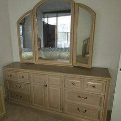 light wood finish Stanley Furniture triple dresser with an attached trifold mirror$125Chicago, IL