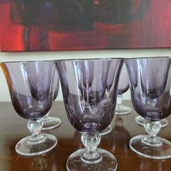 Set of eight Cristal d'Arques amethyst wine goblets with clear faceted bubble stems.$80Willowbrook, IL
