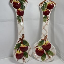 2x Vintage Fruit Apple Design Ceramic Spoon Rest Holder Or Kitchen Hanging Decor Large $40Chicago, IL