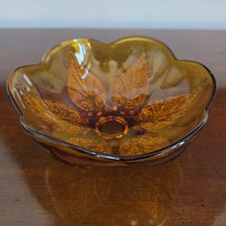 Anchor Hocking - Amber glass bowl with beaded leaf pattern by Anchor Hocking$20Willowbrook, IL