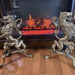 Antique Cast Brass fireplace andirons Mid 19th Century. Rampant Lions Set . 15”.$750Palos Hills, IL
