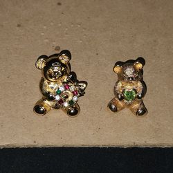 LOT of 2 Vintage Collectible Teddy Bear Rhinestone Metal Color Pin 🧸$20River Grove, IL