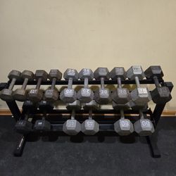 15lb thru 50lb Metal Hex Dumbbell Set With Rack$500Skokie, IL