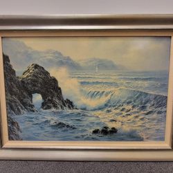 Ocean waves crashing into rocks Sea Landscape Painting Framed Rare Home Office Decor Water$15Schererville, IN