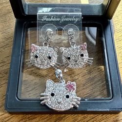 Hello Kitty Rhinestone Earrings And Pendant $26Bedford Park, IL