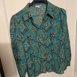 WOMEN’S BEAUTIFUL MULTICOLORED BUTTON DOWN BLOUSE. SIZE 1X- MUSTARD COLORED WIDE LEG DRESS PANTS SIZE 2X$30Chicago, IL