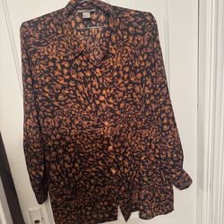 WOMENS LOVELY LEOPARD PRINT BUTTON DOWN BLOUSE-SIZE 2X. WOMEN’S BLACK WIDE LEG DRESS PANTS SIZE 2X$30Chicago, IL