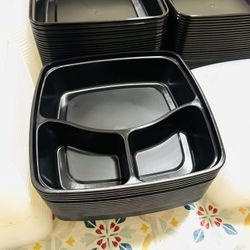 Choice 9" x 9" 3-Compartment Microwaveable Black Mineral-Filled Plastic Hinged Take-Out Container / 50 Case $30Chicago, IL