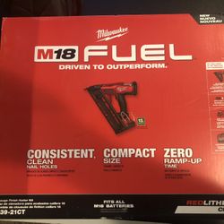 Brand New M18 FUEL 18-Volt Lithium-Ion Brushless Cordless Gen II 15-Gauge Angled Finish Nailer Kit with 2.0Ah Battery and Charger$375Oakbrook Terrace, IL