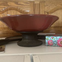 retired PartyLite Moroccan Spice ceramic pedestal bowl candle holder with a dark red bowl and a dark brown/bronze-colored base. $35Naperville, IL