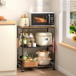 Rolling Kitchen Microwave Cart, 3 Tier Microwave Table Stand with Storage, Kitchen Utility Cart on Lockable Wheels, Small Coffee Cart Shelf Rack Organ$40Aurora, IL