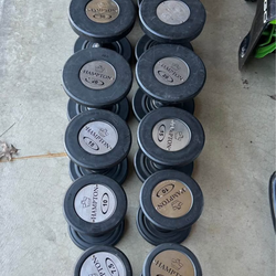 60lb thru 85lb Metal Hex Dumbbells with Rack--$840Skokie, IL
