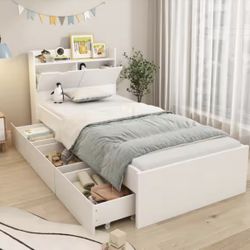 2 BRAND NEW IN BOX Fufu & Gaga Twin Beds W Storage Headboards And 3 Under Bed Drawers$185Oak Park, IL
