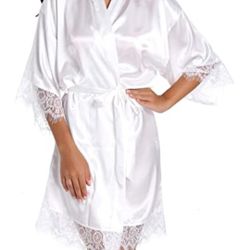 Silk Satin Bride and Bridesmaids Wedding Robe with Lace Trim