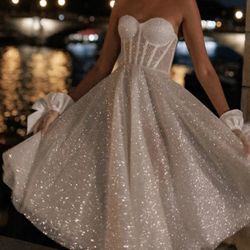 A-Line Strapless Sleeveless Tea-Length Sequined Wedding Dresses size 6