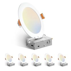 Amico 6 Pack 6 Inch 5CCT Ultra-Thin LED Recessed Ceiling Light with Junction Box, 2700K/3000K/3500K/4000K/5000K Selectable, 12W Eqv 110W 1050LM$35Lisle, IL