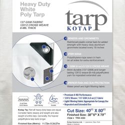 Kotap 40 x 80 Ft. Heavy-Duty Protection/Coverage Tarp, Superior Weave for Greater Longevity 8-mil, Multi-Use, Waterproof, White, 1-Pack (TRW-4080$220Chicago, IL