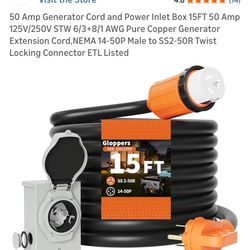 15ft. Generator Cord With Inlet Box.$80New Lenox, IL
