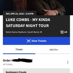 Luke Combs South Bend Notre Dame April 18th$275Warrenville, IL