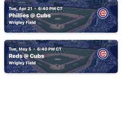 Cubs Vs. Phillies April 20th & 22nd$100Mokena, IL