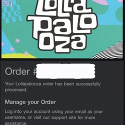 LOLLAPALOOZA 2 DAY TICKETS$600Glendale Heights, IL