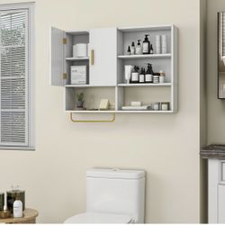 Bathroom Wall Cabinet Wood Wall Mounted Medicine Cabinet with 2 Doors and 4 Open Shelves Over Toilet Storage Cabinet Organizer with Towel Bar,White$50Downers Grove, IL