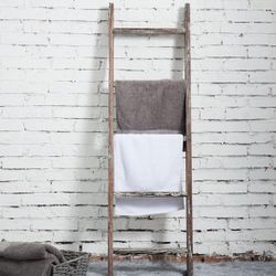Torched Brown Wood Decorative Ladder Shelf, 4.5 Foot Wall Leaning Wooden Towel Blanket Ladder Storage Rack for Bathroom or Living Room$40River Grove, IL