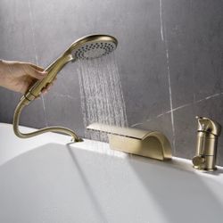 Roman Tub Faucet Brushed Gold Three Holes with Waterfall Tub Spout Filler with Hand Shower High Flow$60Alsip, IL