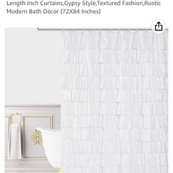 Alimumu White Ruffle Shower Curtain - Extra Long Waterproof Ruffled Fabric,Washable Polyester Cloth,84 Length Inch Curtains,Gypsy Style,Textured Fashi$20Robbins, IL