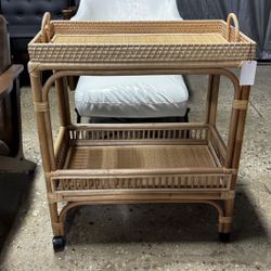 New Mobile Boho Natural Rattan Wine, Make-Up, Kitchen Storage Cart on Wheels $79Schaumburg, IL