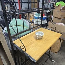 Bakers Rack Middle Wood Shelf Carved Black Metal Frame $30$30Stickney, IL