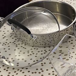 Calphalon Tri-Ply Stainless Steel 3-Quart Saute Pan with Cover AND 3 Piece Set: 3-Quart Steamer Cooker, Insert and Lid $50Oak Park, IL