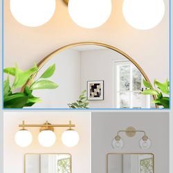 3-Light Bathroom Light Fixtures, Brushed Gold Vanity Lights for Bathroom with Milky White Glass Ball Shade, 18.9 inch Bathroom Lighting Fixtures Over $30Palos Park, IL