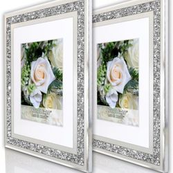 Set of 2 Crystal Silver Mirror Frame 16x20" with 11x14" Mat, Crushed Diamond$60Elwood, IL