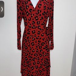 CAbi #5771 Red Siren Wrap Dress Long Sleeve Leopard Print Women Size Large , Perfect Conditions Used Once$30Addison, IL