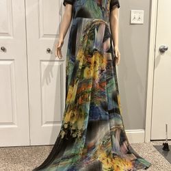 Africa Silk Adire Maxi Dress With Scarf $20Plainfield, IL