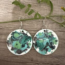 Handpainted Mint Green Wooden Earrings: Boho Marble Effect Dangles$18Orland Park, IL