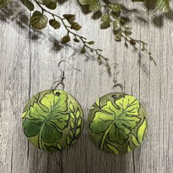 Hand-Painted Wood Dangle Earrings: Brat Green Leaves, Boho Style$18Orland Park, IL