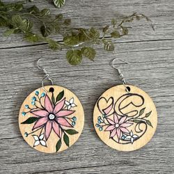 Floral Alphabet E Hand-Painted Earrings: Boho Wood Dangle$18Orland Park, IL
