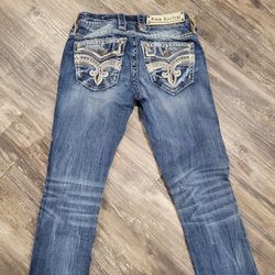 Rock Revival cropped Jeans Woman’s Sz 23 embellished Pockets Bling Western$28Plainfield, IL