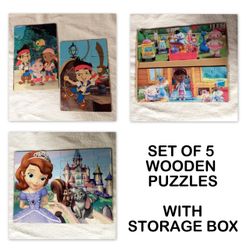 Set of 5 Wooden Disney Jr Character Puzzles with Storage box$15Downers Grove, IL