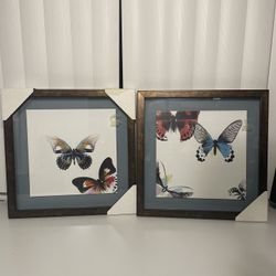 Lot Of 2 Vintage Glass Butterflies Artwork Picture Frame Made USA 16.5”x16.5”x1”$50Chicago Ridge, IL