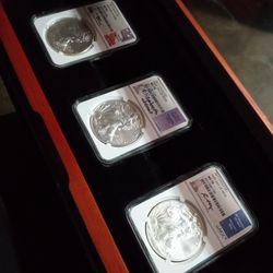 2017 - Set Of 3 Silver Eagle Coins MS 70 Hand Signed $275Aurora, IL