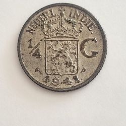 1941 Netherlands East Indies 1/4 Gulden silver coin.$5Bolingbrook, IL