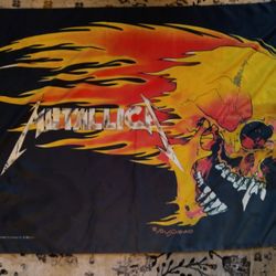 RARE Vintage 2000 Metallica Pushead Flaming Skull Wall Tapestry 41" × 31" $75Clarendon Hills, IL