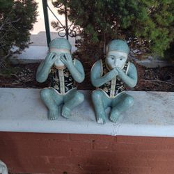 12" H Set Of Two Pieces Porcelain Vintage Wise Monkeys Outdoor/ Indoor Figurines Statues Decor $80Blue Island, IL